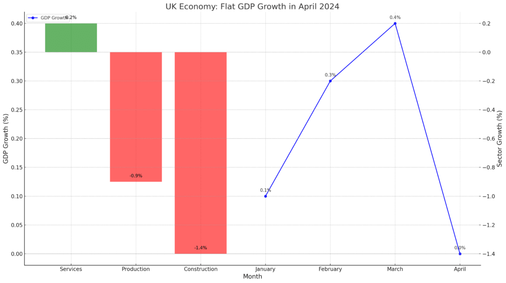 Dane są jasne: PKB w kwietniu nie wzrósł, co jest znaczącym ciosem, zwłaszcza że gospodarka zdołała wyjść z recesji pod koniec ubiegłego roku. W pierwszym kwartale 2024 roku odnotowano wzrost o 0,6%, a w okresie trzech miesięcy do kwietnia wzrost wyniósł 0,7%. Jednak jeden miesiąc bez wzrostu może zniweczyć te pozytywne wyniki.
